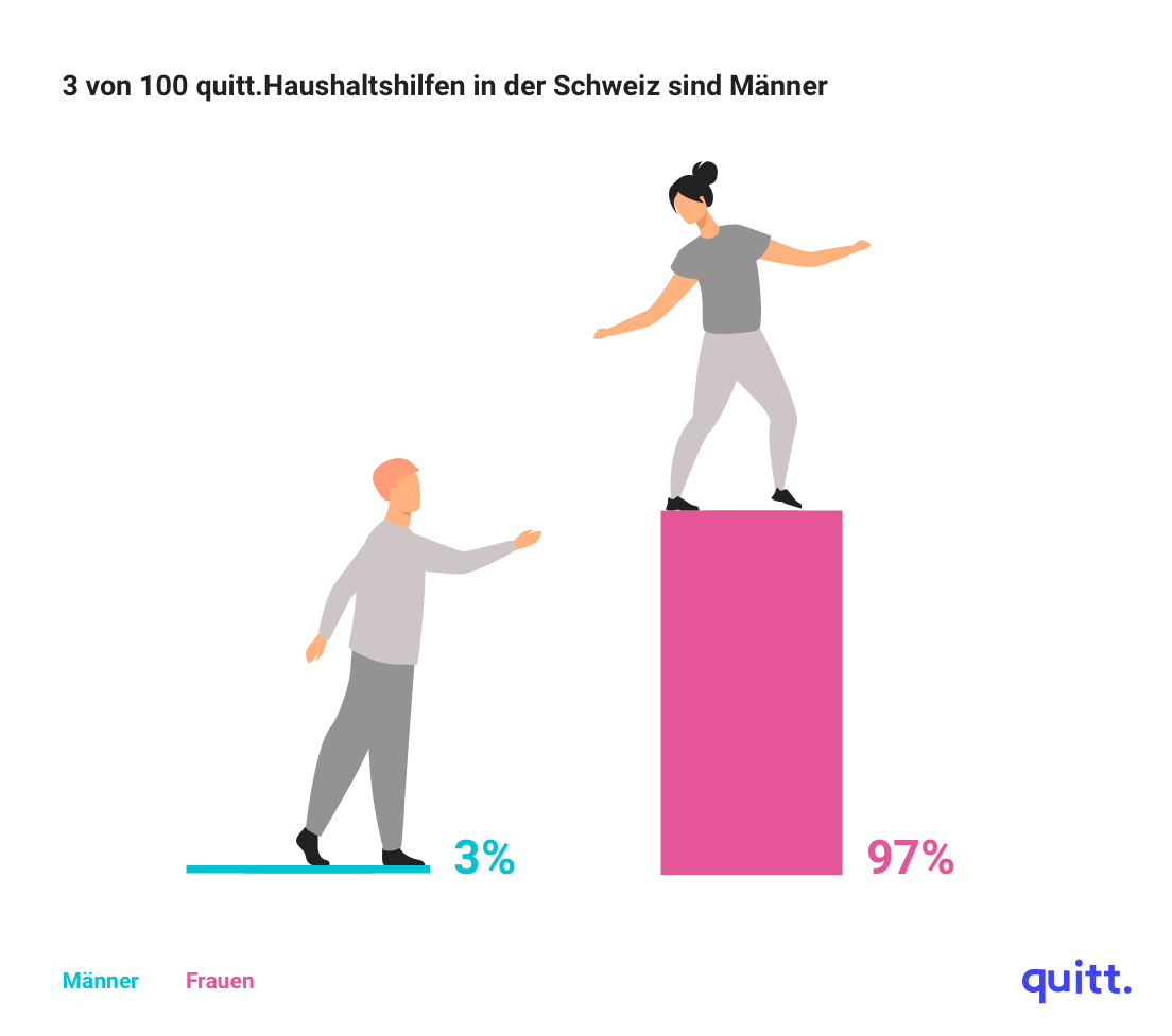 - Eine Analyse von quitt. zeigt, dass es ein extremes Geschlechter-Missverhältnis gibt. Nur drei Prozent der Haushaltshilfen sind Männer.